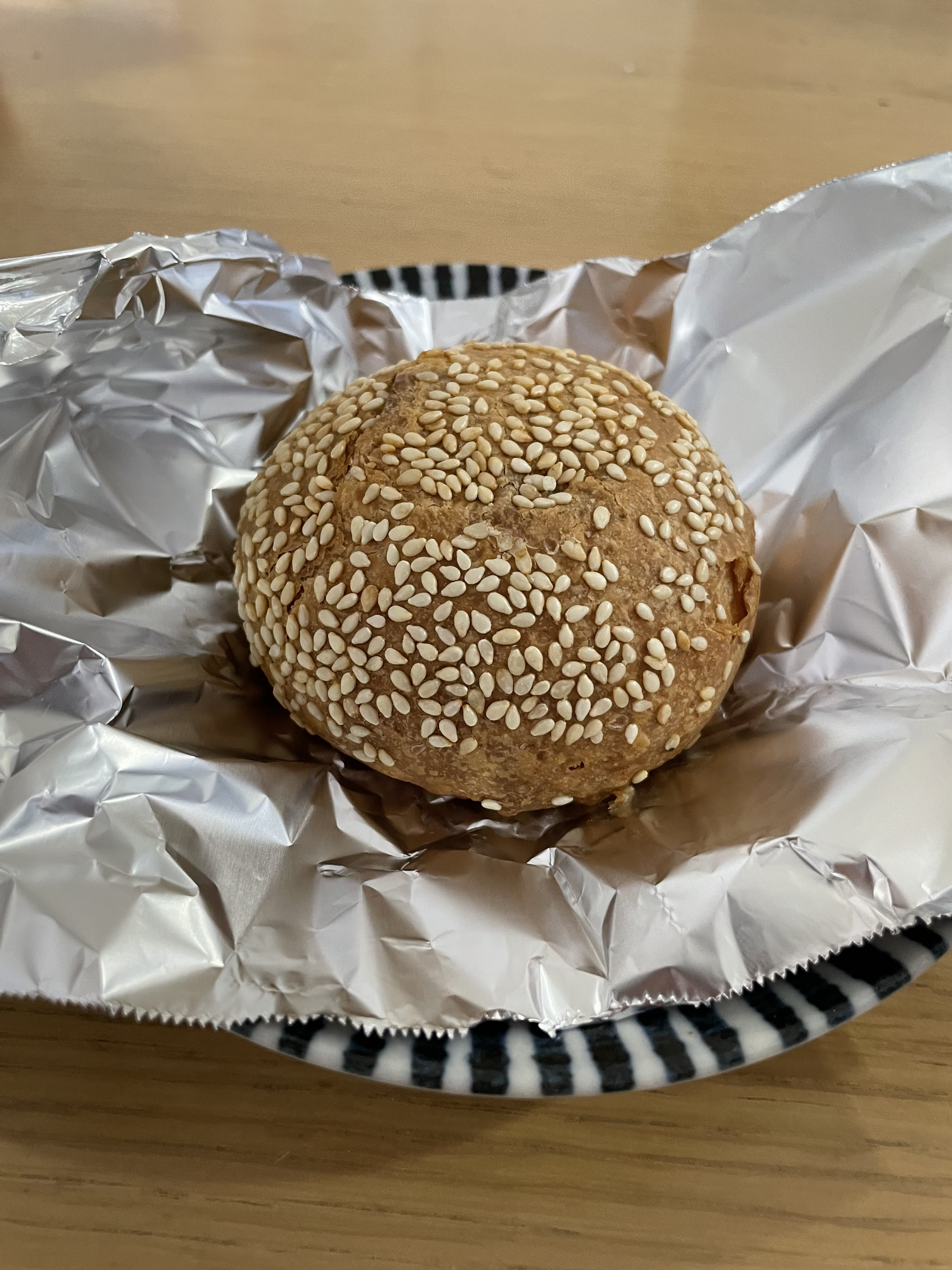 味は良いが皮が硬い。生地を発酵させてないので、ふんわりしない