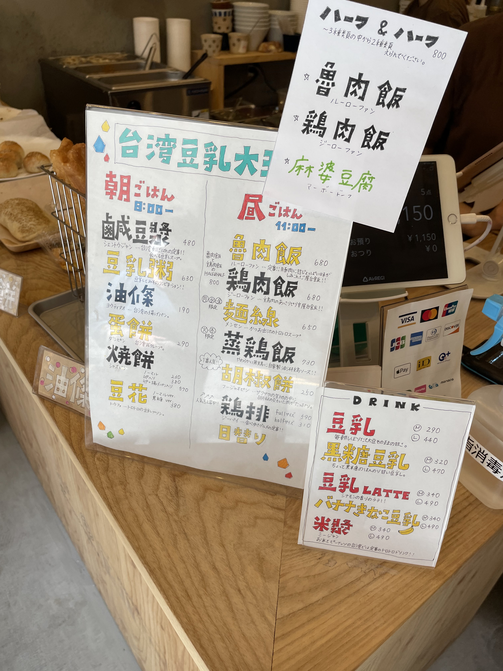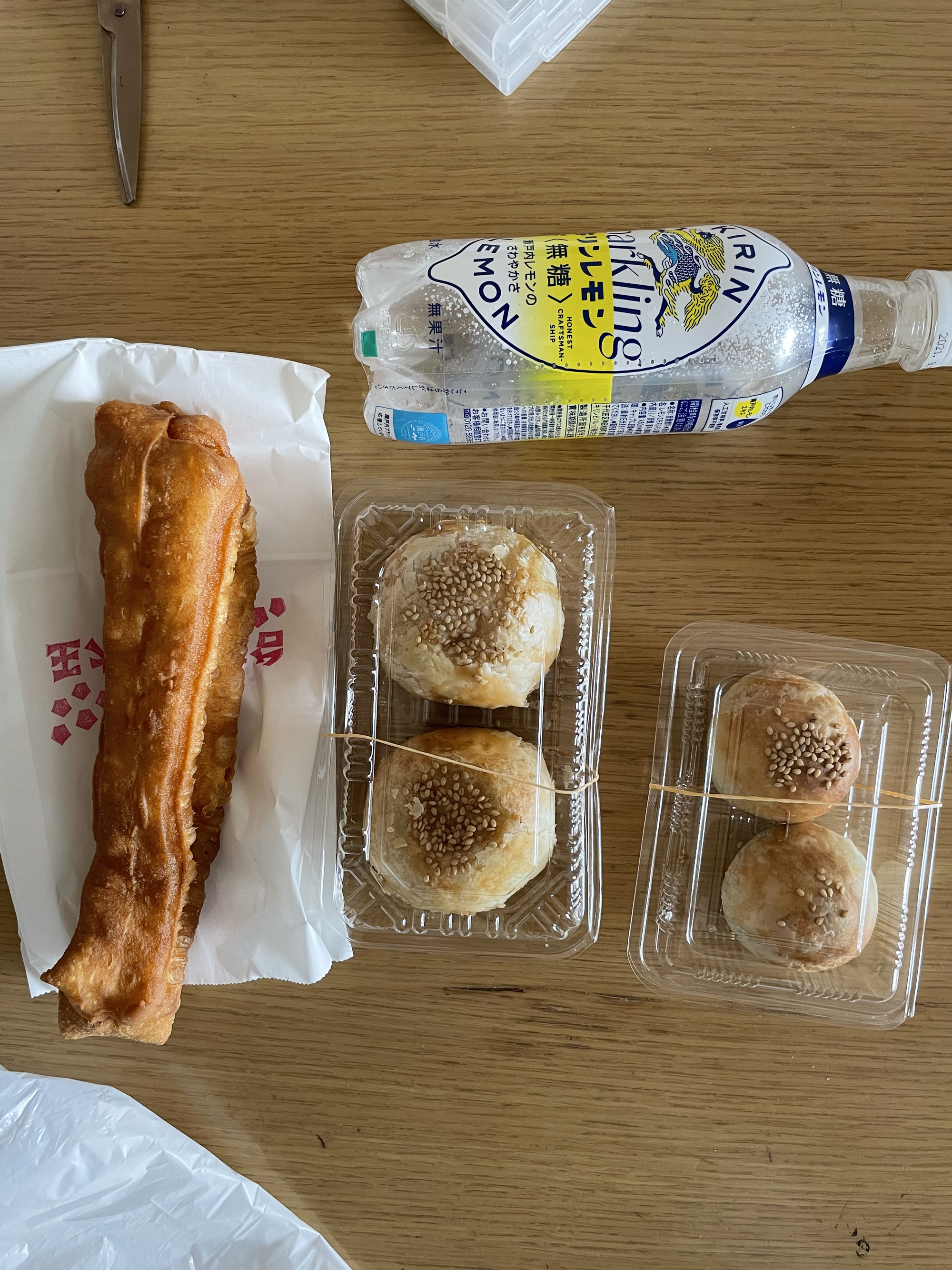 水道橋から歩いて、九段下の台湾豆乳大王に胡椒餅などを買いに 胡椒餅2個とピーナッツまんじゅう2個, 油条1本を買って1100円ぐらい