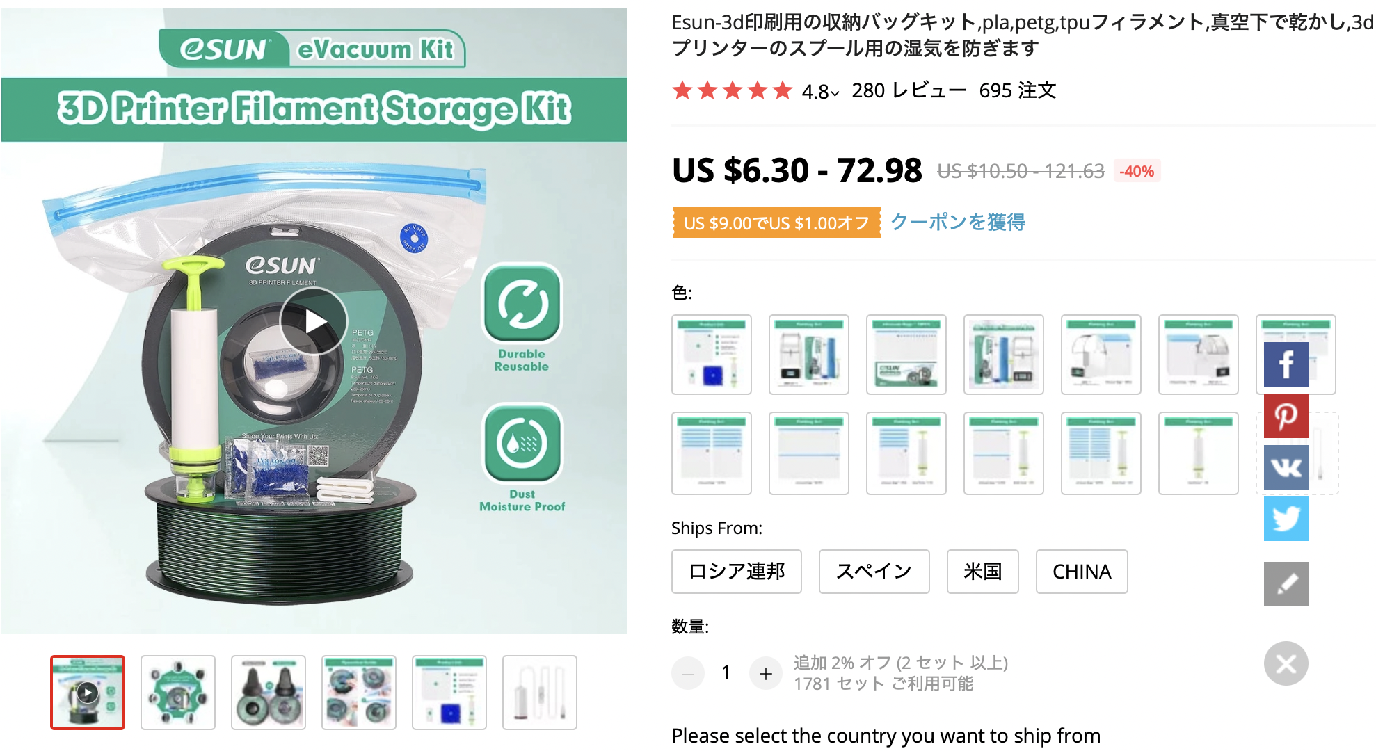 - 以前はフィラメント導入穴を開けた大型のタッパーにシリカ乾燥剤を入れて、保存とフィラメント供給を同時に出来るようにしていたが、プリンタの近傍に置かなければならず場所を取るのが微妙だった。Esunのフィラメント保存バックを購入したので、使っていないときは真空保存するようにした。これで十分でしょう。