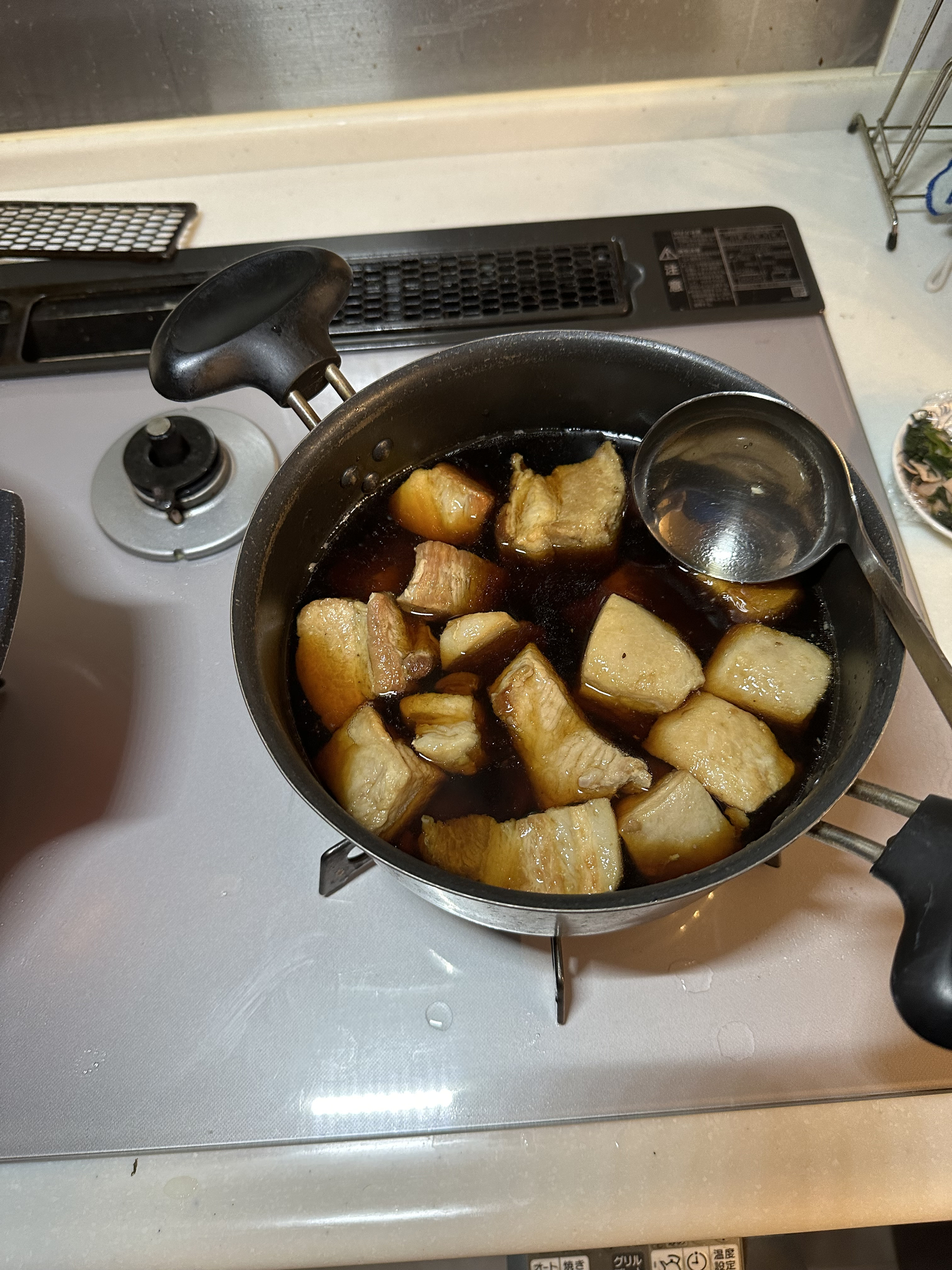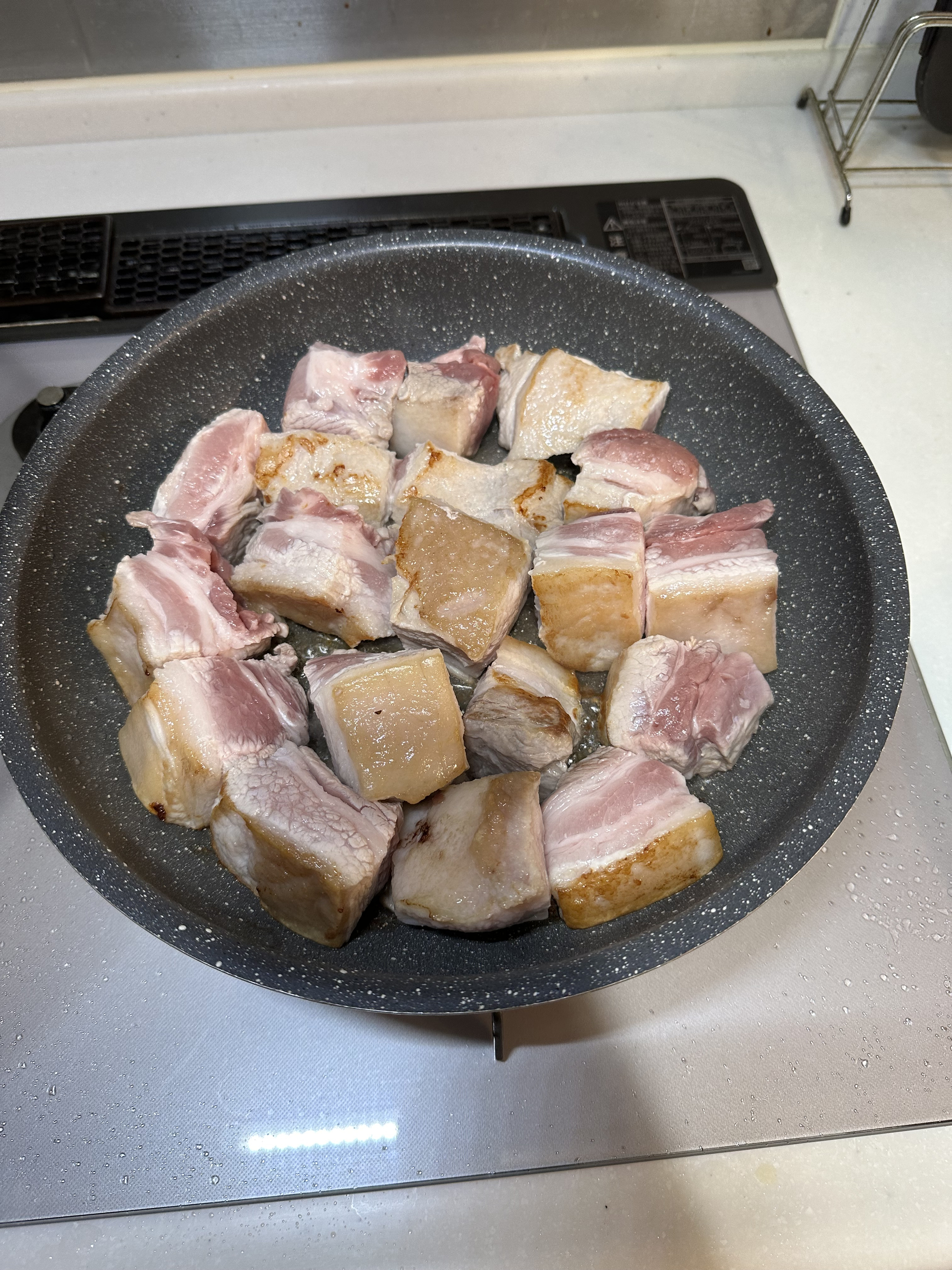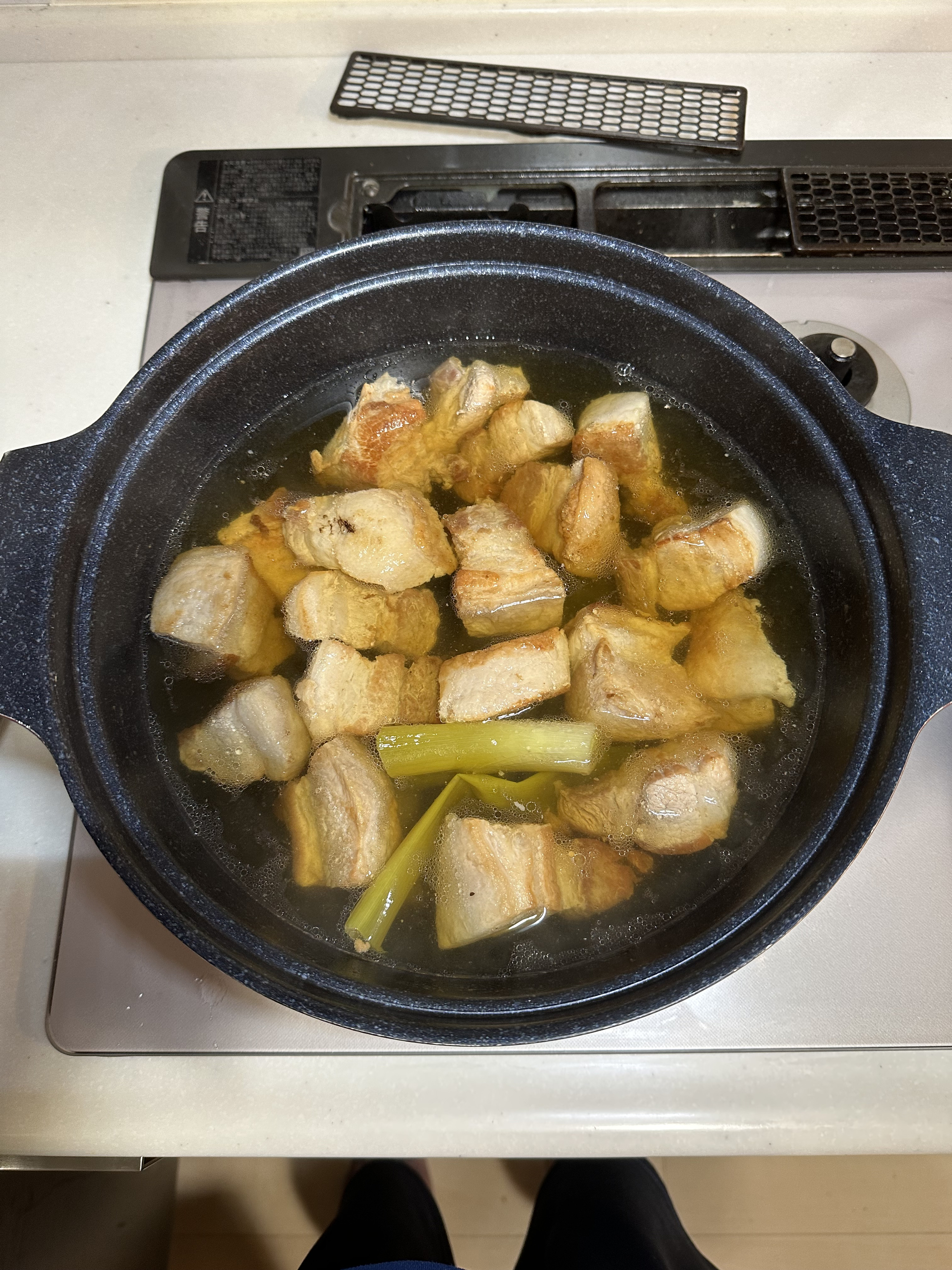 - 奥さんが角煮を食べたいというのでスーパーで豚バラを1.3kgほど買う