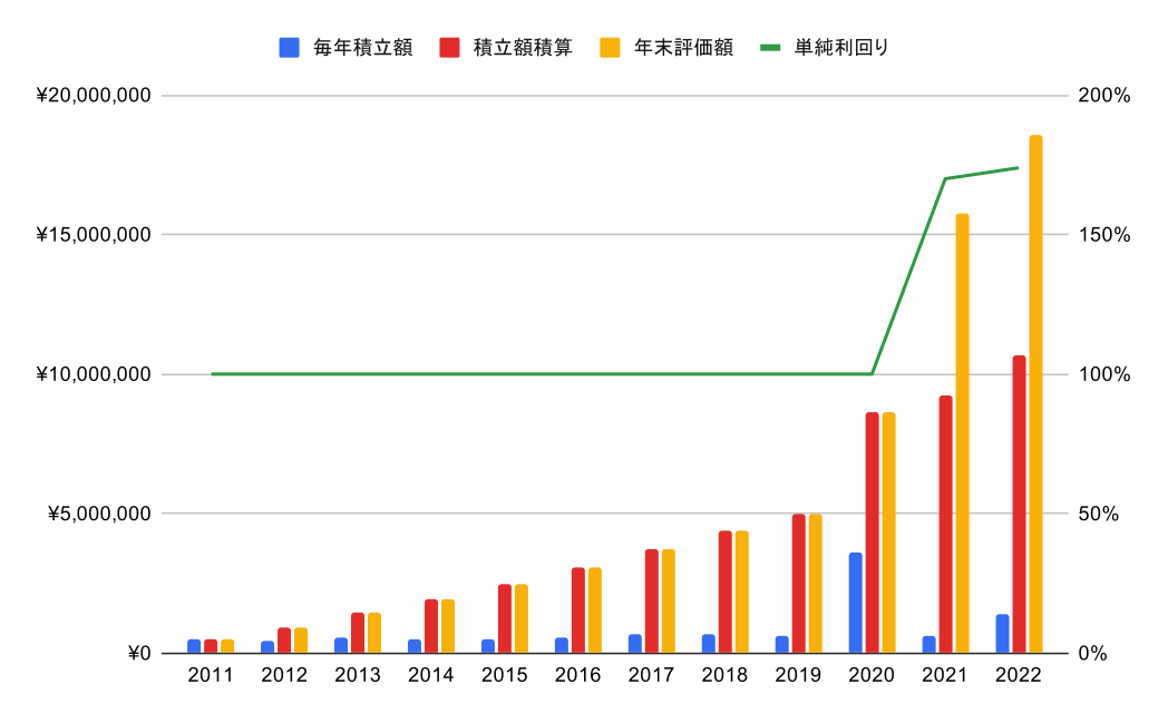 #投資簿価が 1000 万を超えた。 #利回りとしては今年は微増。アメリカのインフレが落ち着いてきており、政策金利もそろそろ上限なので来年は期待