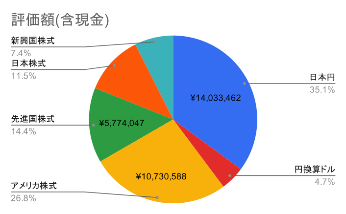 新興国はこれまでも持分が少なく、それをさらに 10%ぐらいまで圧縮しようと思っていた。中国が不透明すぎて、結局新興国はいつまで経っても新興国なので、10%持つ程度なら要らないでしょということで投資中止。US と JP 以外の先進国はこれまで、7%程度の持分で、こっちもそんな中途半端な持分要らんでしょうと。NASDAQ 100 はニッセイの投資信託がまあまあ良さそうなのと、S&P 500 よりも上がりが狙えるため。TOPIX 25%, S&P 500 60%, NASDAQ 100 15%になるように年間 360 万円積み立てて行く。課税口座に入っている新興国は、税金がかからない範囲で少しづつ売却して行く。先進国はそのままかな。