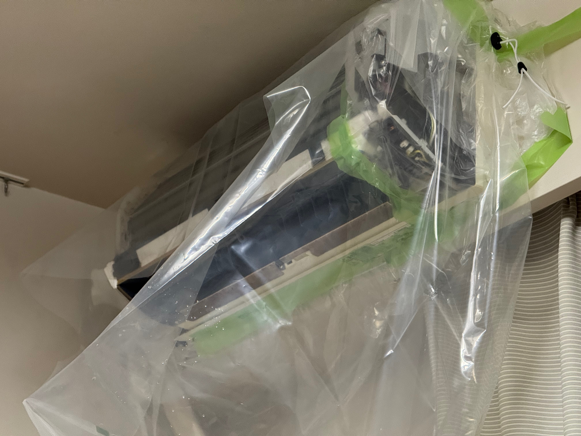 - 朝からエアコン 2 の掃除、養生をして初めて高圧洗浄機を使ってみた。