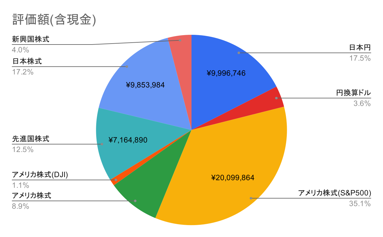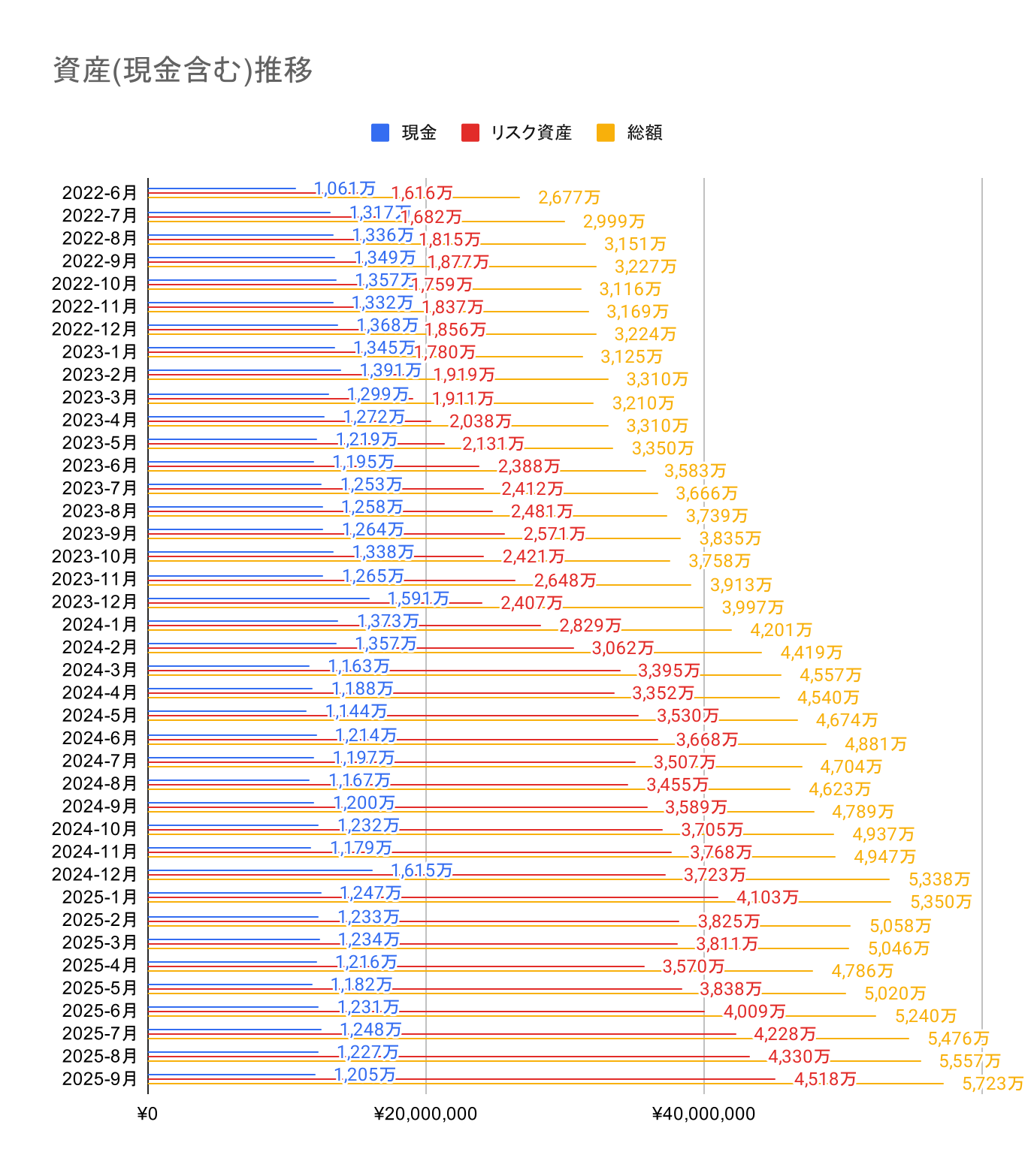 支払いが多かったので現金は減少。リスク資産は株高で大きく上昇。ちょっと上がりすぎている気もする。