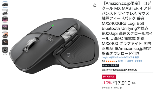 - セールで買ったMX Master 4が届く